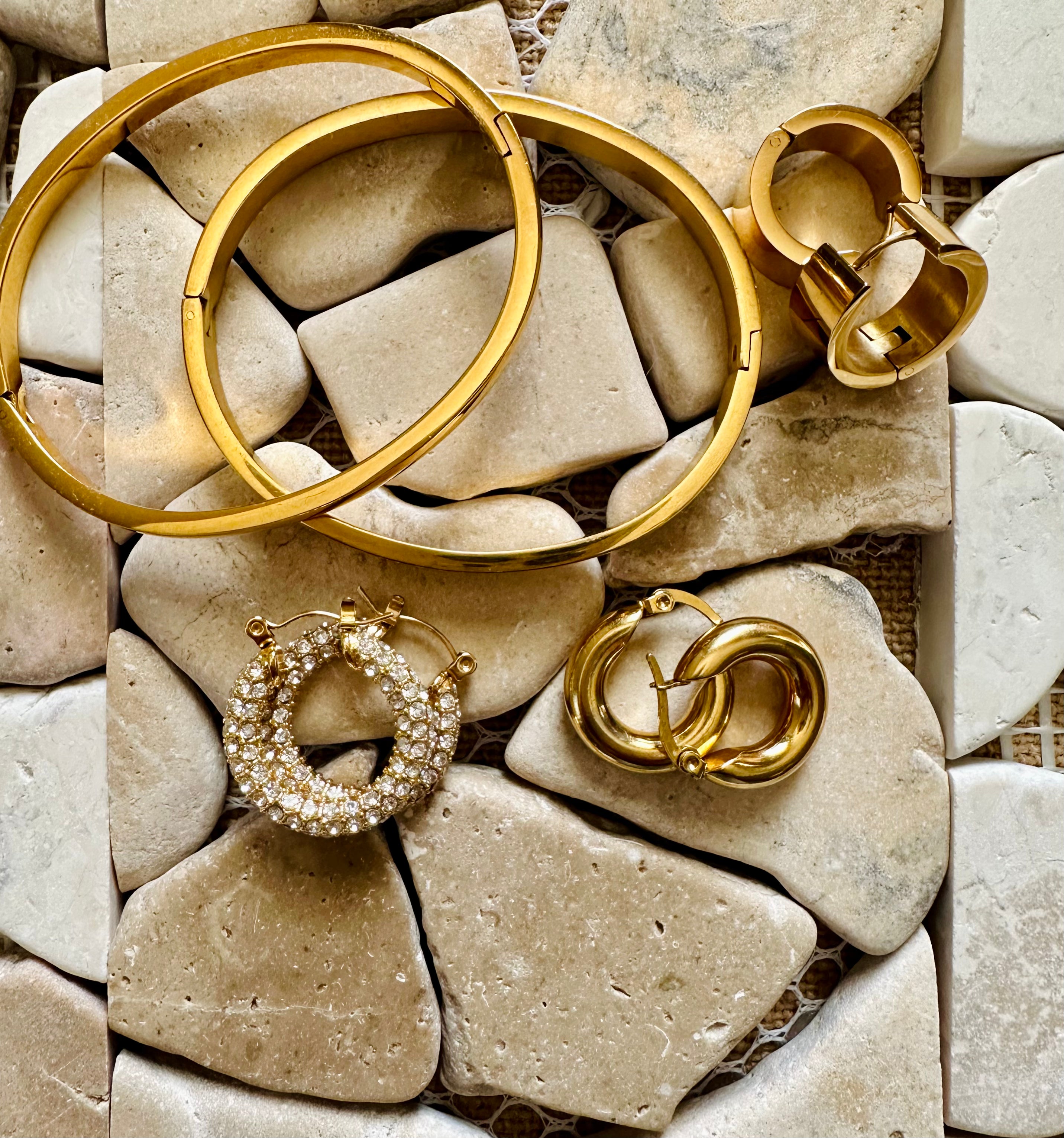 With our collection, you'll discover the artistry of rings that wrap you in luxury, bracelets that adorn your wrist with extravagance, hoop earrings that ooze glamour, and bracelets that speak volumes about your flair for style.